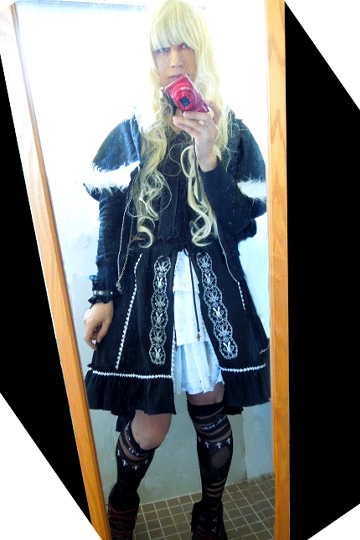 † 猫耳パーカー&うさぎスカート †Hungry&AngryにFRILLを合わせてみた。 猫耳しっぽ付きのパーカーにウサギさんのスカート。 ・・・いつも着ないような系統の服同士なので、 名前 書いているだけで違和感あるな。 ま、これも、年始のお祝いの一コマということで。 いつもだったら、こういうカワイイ服は、わたしは 怖くて着れません。 そうそう、このスカートを穿く時に、慌てて着ようとしたものだから、 うっかりバックの紐を止めているボタンを引きちぎってしまったんだよ・・・。 どこまでも カワイイ服に慣れない私のバカ! 心の中で泣きながら、ボタンを縫い付けたのでした・・。 初めて着る服には、事前に全体の構造を確かめて、充分に気をつけて着ましょうね。 † Xmasイヴのバトルアーマーアームカバー †h.Jelly ワンピース SixhのShopで、他と一緒に バトルアーマーアームカバーを買った。 インチキ臭いブロンドで 撮影ナリ。写真が小さいので、何が何やら判らないけど・・。 始めは いつもの薄地のアームカバーと思って 買う気は無かったのだけど、 こいつは ベロア生地っぽい 冬向きの生地だったので、買ってみた。 7千円は ちょっと高かったナリ。 ・・・でもでも、アームカバーフェチな私は 買わずに見過ごすなんて できないんだよぉ~! 鴉色のテラテラした生地の 編み上げも、私のリビドーが黙っちゃいない。 眠っていたjellyのメタルワンピースと、このSixhアームカバーの 組み合わせには、なんかゾクゾクする。 † JellyMetalで 休日のひととき †仕事で 毎日 睡眠3時間ぐらいで乗り切った今週は すっごい疲れた。 この連休で、心身ともに癒しが欲しい感じ。 そこで、人知れず こんな格好をしてみて、ちょっとドキドキモード。 いつもの Sixh じゃありません。h.naoto jelly です。 こういう若い娘向けのフェミニンな服は 恥ずかしくて 外に着て出られないので、自宅コスプレプレイ限定。 Jelly メタルビスチェと メタルパニエ。質感は こっちの方が判りやすいかな。 ・・・あかーん! おなかが・・・ おなか がぁぁーっ! Sixhのライダースジャケットも良い相性なんだけど、こっちのような マント・ケープ類を使った方が 私好みのコーデかな。 ・・・ちなみに、Sixh IBI系のタンクトップを着たままでのプレイは 萌え燃えみたいだぞ、くすくす。 |