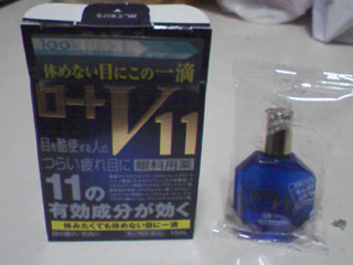 † 酷使している目に感謝して 高い目薬 †ドラッグストアに行く用事が出来たので、目薬を買うことにしました。 私は 毎日 2時間半だとか 3時間とか、トンでもない睡眠時間で暮らしている上に、 ネットサーフィンをするし、しかも 花粉症の季節到来ともきた。 酷使している私の瞳には、少し労わってあげたい そんな感謝の心なのである。 目薬の陳列棚の前に しゃがんでみると、目薬には 種類が色々あって、しかも値段も色々あることが判る。 安いのだと 300円を切るものから、高いものは 1,000円前後する。 しばし、考えてみた。 ・・・いやいや考えてみたところで、私に 目薬の内容など わかるわけではないんだけどね。 酢酸トコフェロールだか、コンドロイチン硫酸マグネシウムだとか、私に判るわけがない。 あとで 思い出そうにも、「作さん どこフェラーする」 だか、「こんど チンチン 流さん まぐわいシル」 とか、脳みそが誤変換しかねない ヘンテコな薬剤名だもん。 ええい! お目目に、目一杯 感謝しよう!ケチケチしない!・・・と決めて、 そこで一番 高いやつ、「眼科用薬」との触れ込みの、1400円の目薬を買っちゃいました。 疲れ目のための「ロート製薬 点眼薬 V11」でございます。 私のお目目さま、 いつもいつも 僅かな休みで、いろいろ酷使して、ごめんなさい。 これからもよろしくお願いします。 この記事にコメントする