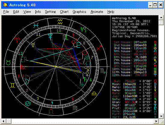 † 【占星】 誕生日のパーティ †誕生日にパーティがあるそうなのですが、行った方が良いかな?という質問です。 今回の星図は、難度が高い っていうか、色々考えさせられる星図に見えます。 私もヘタクソぶりがモロ出てしまうようで、恥かしいですが、 勉強のため思いっきり 背伸びして書いてみます。 時間支配星はASC主星と同じ金星で、7室手前の蠍座でデトリメント。 月は双子座で太陽そして木星から離反して、ペリグリンの状態でヴォイド。 アングルから外れています。 この星図で、ASC主星の金星がBesiegeになっているか?(その影響はどうか?)という問題は、 占星術師の基本的知識を試すのに 良い材料だと思いますね。 その答え方によって、どこまで占星術を勉強しているのか、よく判るケースです。 (その定義には、占星術師によって 微妙に表現や条件などが異なっているなどしているため) 私の結論は Besiege には該当しない ということです。 Besieging の状況ではあるが、Receptionを受けているので Release されている・・・ということです。 パーティを表すのは、5室主星の太陽ですが、微妙な位置のアングルですね。 そして、どことも繋がりが無い。 月がヴォイドで、金星はパーティ主催者の土星から離反しており デトリメント、5室太陽とも繋がりが無いことからして、 今現在、質問者は、パーティに招待されていない 招待状を受け取っていない、もしくは 参加の意思が無い・・・・ということです。 ただ、金星は、主催者 土星とM.R.の火星に良好に歓迎されており、これから招待を受ける可能性があります。 ディスポジターは 外惑星のオキシデンタル、シグニフィケイターは 内惑星のオリエンタル、 アングルの不動宮で 度数差1/3度ですから・・・、常識的な日程を見ても、おそらく 3日後かなぁ。 3日~7日後に招待を受けるかもしれませんね。 本人が参加するのかどうか。・・・んー、、、月がペリグリンのヴォイドだから、 本人 あんまし真剣に考えていないっぽいんだけど。 この質問者がパーティに出席するのかどうか自体が、問題になるような気がする。 カレント進行によるセクスタイルのシングルリセプションだと、 本人が望めば 叶う というレベル(ボナタス)らしい。 で、月が弱いけど 、11室主星の土星のモエティ内に金星があって、そこから抜ける前に火星に繋がるので、 参加の意思は弱いながら あるように思う。 2室主星の水星が7室。これは 盗難に遭う表示らしいのだけど、ASC主星は7室主星にレシーブされていて、 水星はペリグリン。盗難ということは無さそうですね。パーティですから、プレゼントを渡す表示と見たほうが良いです。 面白いことに、8室主星の木星が2室に入っています。これって、プレゼント交換でしょうかねぇ。 プレゼント交換の表示ってことは、やっぱり、パーティに参加するんでしょうか。 参加して、本人がとても嬉しいこととか そういうことは起きないかもしれませんね。 ただ、月が木星の磁化を受けたまま 終了するので、ほわほわと良い感じかもしれませんね。 月が進行すれば、金星のターム→土星のターム→火星のタームと動くし、 とくに土星のタームでは トリプリシティも重なって 土星の影響が強まるので、 これは参加する意思の表示かもしれません。 水星は 指輪とかブレスレット、文房具とか、ちょっとした小物。