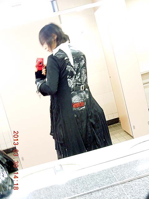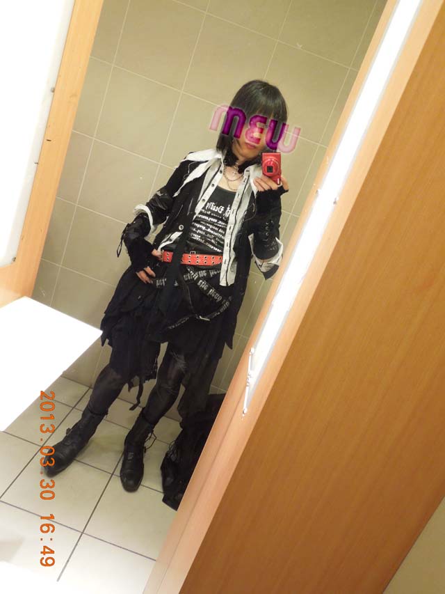 ★は、今回 初めて 使ったアイテム。 それらは ずーっと クローゼットで仮死状態になっていたアイテムたち。 これを使うことは 将来も無いだろう・・・と思ってたアイテムさえもある。 今回、ちょっとコーデを語るぞ! 七つの大罪 タンクトップが、黒色に銀色のレタリングということで、それに合うボトムに悩んでいた。 持っているようなパンツでは 退廃感が 出てくれないんだよね、 スラッシュのデニムでは ゴス感に欠けるし。 黒に銀、黒に銀・・・と悩んでいたら、銀色のレタリングベルトのアシメスカートを持っていたのを思い出した。 これで上下が合うぞ。 次に、アウターは、個人的に Sixh のカッチリしたアウターが好みなので、色々考えたけど。。。 タンクトップでは寒いので 長袖のアウター、それでいて 前が隠れるようなライダースでは無いもの。。。 ・・・なかなか見つからない。 今回のSEVENのモードっぽいフォルムになる Sixh のロングカーディガンを採用。 で、黒色ばかりでは淋しいので、差し色で白が欲しい。 (タンクトップを見せるために)前が開くタイプのシャツを色々考えたが、面白みに掛ける。 退廃的にしたいのに、カッチリとしたシャツでは あんまし合わない。 そこで 従来 扱いに困っていた DarkRedRumのシャツを、合わせてみた。 ・・・これがイケる! タンクトップの縁取りをこなす上に、DRR シャツのトゲトゲの襟の 遊びが良い! 前開き状態で着るので、シャツの肩幅が合わないことも 気に成らない。 今回のイベントのテーマが「多様な襟(飾り)」なので、この変形襟も趣旨に合うというのが これまた。 あと、アームカバーは冬用のSixh ベロアタイプ。 タンクトップ首元が淋しいので、Wチェーンクロスチョーカー。 寒さ対策用に、Sixhのロングタイプの巻きスカートなど。 今回、こんな感じで組み上げたコーデなのだ。 Sixh じゃあまり出さない 退廃感 を 醸し出してみた。 使いどころに難しくて死蔵している品々が、 ちょっとしたことで 意外にイケる形になったりする。 安易に処分しなくて良かった。 この新鮮さと意外性が面白いなぁと感じるこのごろ。 というよりもさ、この日、妙に寒いんだもん! ドレスコードになっているタンクトップを活かしつつ、寒さ対策をする・・・という、この矛盾! 非着用は、外で寒かったときに、追加で着るためのもの。 そのときの写真は 前記事の ANGRYちゃんとの記念写真で写っているよん。 こういう写真はさぁ、トイレとかで撮っているんだけど、 ときどき、「何やってんの?このヒト・・・」という眼に晒されるのが、 ちょっとね。。。(苦笑) この記事にコメントする