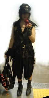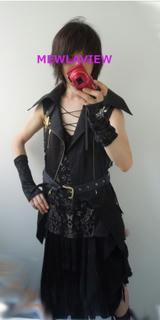 え~と・・・、髪の毛が 前髪が まだ伸びてません。ゆかり姫と同じ おサルパッツンカット事故 から復帰できるのは、もうちょっと先になりそうですね。 まず 暑い日だったので、そこでハーフパンツ・・・というのは飽きたので、ガウチョパンツ。 ゴンキンの このガウチョパンツは、サテン生地なので黒々していても サラサラ涼しい。 このままでは フリフリ系になりそうなので、カッチリ系でも 通気性の良さそうな アウター探し。 そこで、何と、私がSixhに出会ったばかりのころに買って 死蔵していた ノースリーブジャケット。 インナーは色々考えたが、黒でありながら 涼しげで、存在が沈まない 柄物というアイテム。 このタンクは、蝶のモチーフが全面プリントで、前が紐編み上げで胸元パックリ。 この記事にコメントする