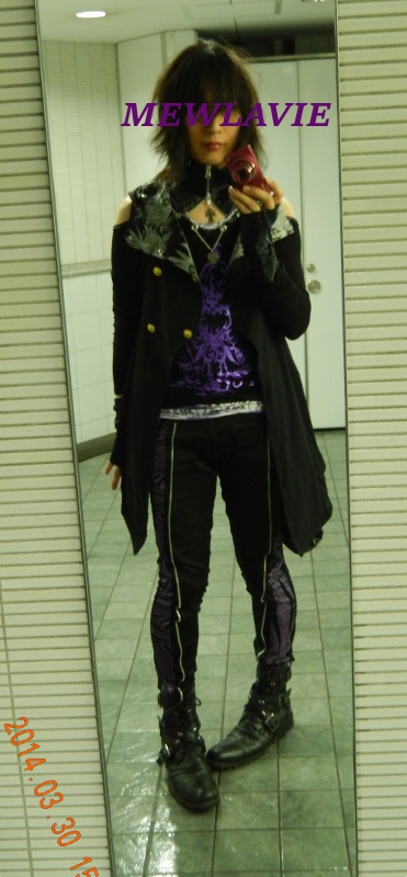 この頃、紫色にハマってます。 色がワンパターンでごめんなさい。 やけに内股になってますが、・・・理由は無いです。なんで内股になっちゃったんだ? この頃 お店に行くときは Sixh/NiNE系ばっかりなので、 廣岡デザイナーのイベントのときくらいは Blood系かDarkRedRam系にしてみたいとも思ってるよ。 あと、この日、汗ばむくらいの暖かさだったけど、帰りの夜道は 雨がぶり返しで 上着(もちろんSixh!)があって助かった。 この時期、昼と夜との寒暖差に気を付けないと危ないですよ。 追記・・・この日にお迎えしたのは、「X(Ten)」というロゴの入った(Sixh,NiNEに続くはずだった幻のカテゴリー?の試験作らしい)のボトムと、SEVEN系のレザーの飾りコルセット。 あと、SDSのドラゴンレザーのメキシカンスカルコルセットを予約注文(5月半ば頃には発売になるらしい)。廣岡デザイナーの肝いりの ドラゴンレザーのコルセットなのだけど、従来のコルセットとはフォルムが違っていて、デコルテのカットソーって感じ、え~と、つまり、肩紐のある幅広のビスチェみたいな感じだね。襟がワイヤー入りになって、コウモリ翼のような形の大きな立て襟になるんです。ま、エリマキトカゲを想像していただければ、なんとなくわかるかな? ・・・これ、結構 毒というかクセ物で、予約した今の自分でも どう着こなすのか 迷っている品物。 ファッションショーでは、重野さんが、Sixhのトライアングラーカットソーの上に、このドラゴンレザーのコルセットを重ねて、さらにボリューミーなロングのスカートで、まるで ファンタジーの中の女性剣士のようなカッコ良さになってた。・・・けど、それが完璧すぎて、他にどういうコーデが出来るのか さっぱり見当もつかない。 コーデの見当も付かず、そして 結構なお値段がするのだが、見捨てるのも惜しいので、イチかバチかで 買うことにした。 この記事にコメントする