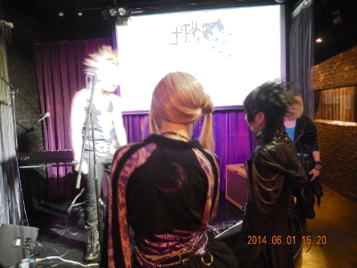 † Sixh.解散パーティ…3.その時が来るまで †早めに到着して入口で待っていると、湯澤さんが通りかかった。 湯澤さんが慌てて 中へ連絡してくれたようで、さっそくスタッフの方の誘導で、 正面入口から階段を降り、ステージの隣の狭小な廊下へ。 6人は めいめい手荷物を置くと、 開口一番は この日の暑さの愚痴でした。 私は ここに来る途中の服から、パーティ用のコーデに着替え。 と言っても、着替えの間なんてありませんから、ね。 しばらくして、それぞれにIBIさんのコーデ手直しが入りました。 元々は それぞれがコーデを提案して居たものだと思うのですが、 そこに或る方はスカートだったり、或る方は アクセサリーだったりを、付け加えたりしていきます。 私の手直し箇所は 帽子を付け加え ベルトをSixh特製物にしてます。