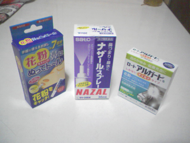 † 花粉症には鼻にシュッ! †どんくさい私は、毎年 ヒドイ風邪に悩まされるなぁ・・・と思っておりました。 いえいえ、それは花粉症です。。。と、誰も突っ込んでくれませんでした。バカな私は、花粉症と気付くまで 何年も掛かったのですよ。 昨年までは 一応、症状緩和の飲み薬を飲んでいたけど、イマイチだった。 鼻詰まりで窒息しそうになり、睡眠不足になることもザラ。 鼻詰まりのせいで喉呼吸してしまうので、扁桃腺炎から熱を出すこともある。 クシャミ、鼻水、睡眠不足に扁桃腺炎。ほんと、苦しい。 今年は、いいものを見つけた。 鼻の中にシュッと吹き付けるタイプの薬(真ん中のやつね)。 それでピタッとクシャミが止まるようになった。 私の場合、花粉症を通り越して、鼻粘膜が痛みすぎて 鼻喘息という過敏症状態になって、 花粉がどうのこうの構わず、クシャミと鼻血を繰り返していたんだ。 花粉症→クシャミ→鼻粘膜が傷む→神経露出して過敏になり さらにクシャミ→さらに鼻粘膜が痛む→以下 リフレイン ・・・という悪循環で 花粉症以上のヒドイ状態に苦しむのが今の季節。 今度、試しに 鼻の中に吹き付ける薬を試してみると、これが良い感じに効くんだよー! この薬でクシャミを強引に止めたことで、この悪循環が止められてさ、とっても救われたよ。 この記事にコメントする